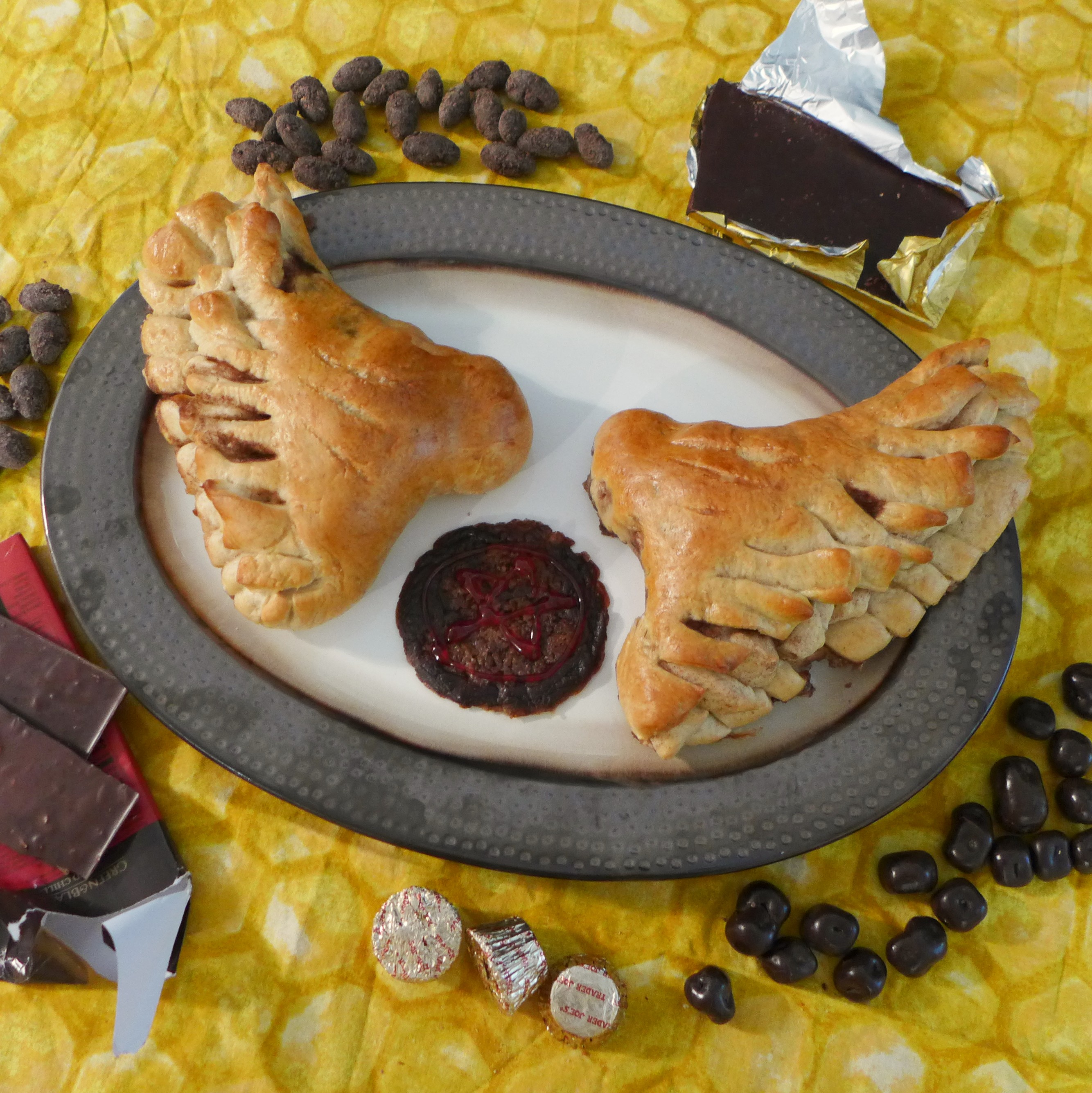 Once the pie has cooled completely, protect it from being consumed by demons, roommates, or other unclean creatures by placing your pre-baked anti-possession charm medallion in the middle.